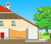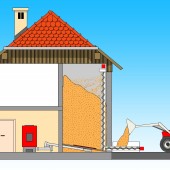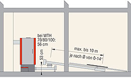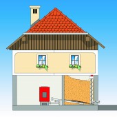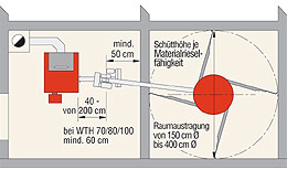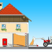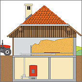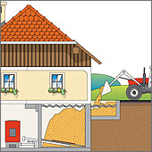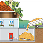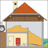 Загрузка підвального складського приміщення може оптимально відбуватись з допомогою подаючого шнека від Hargassner. |